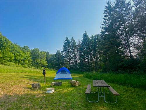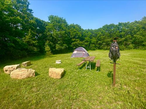 Each campsite can accommodate tents and has a picnic table, fire ring, utility post (for hanging lanterns, garbage bags, backpacks, etc.) and boulder seating. Up to 8 adults, 6 children and 3 pets may occupy a rustic campsite.
